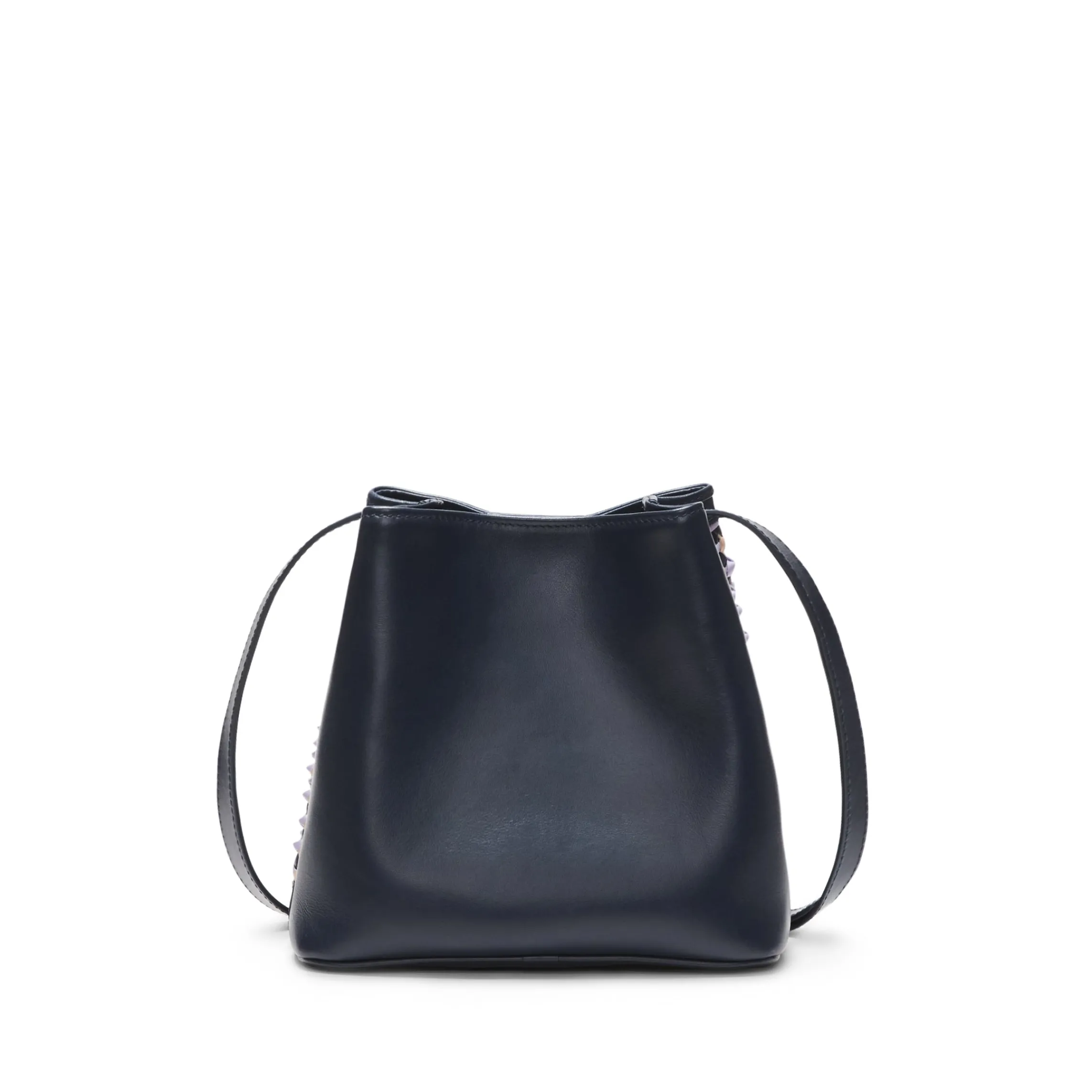 Bucket bag with iconic tassels made of soft leather with a nappa effect. The special woven design is enhanced by small leather knots. Perfect for making any look more chic and exclusive. Drawstring fastening. H21xL21xW13