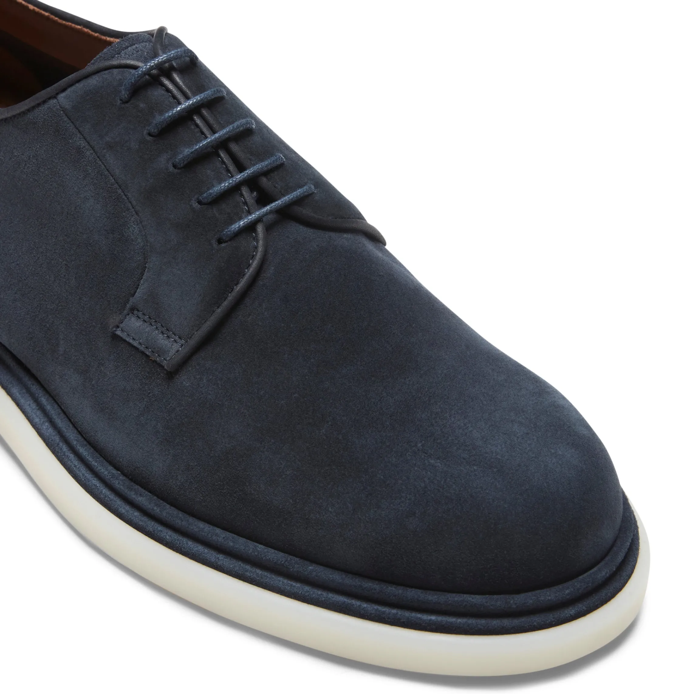 Lace-up derby shoe made of soft suede. Featuring stylish details such as a welt covered in leather that matches the upper, this shoe offers a casual look. Lightweight rubber sole.