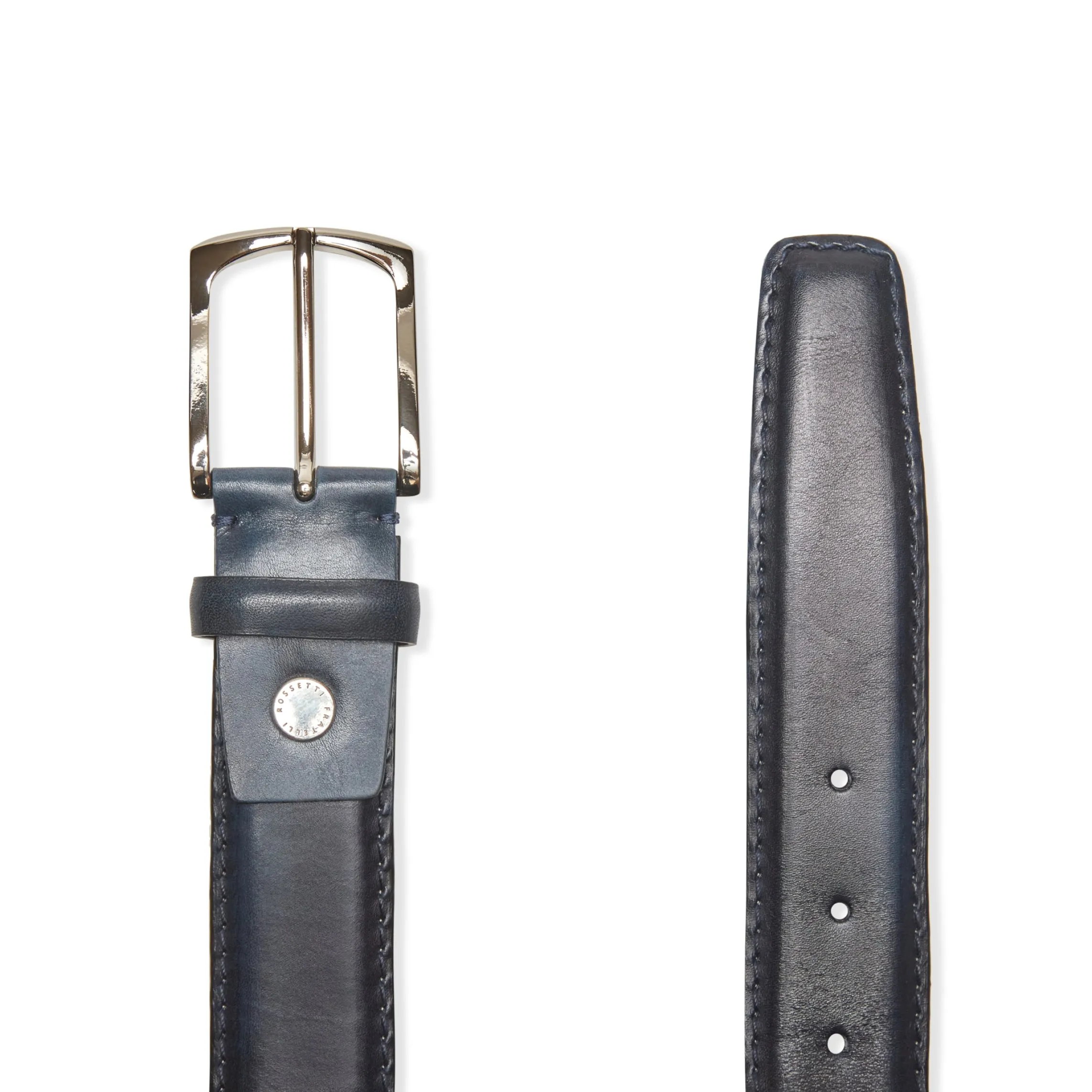 Men’s belt made of soft leather with a shaded appearance created using an artisan coloring process. Palladium buckle with a shiny finish. Height 3,5 cm.