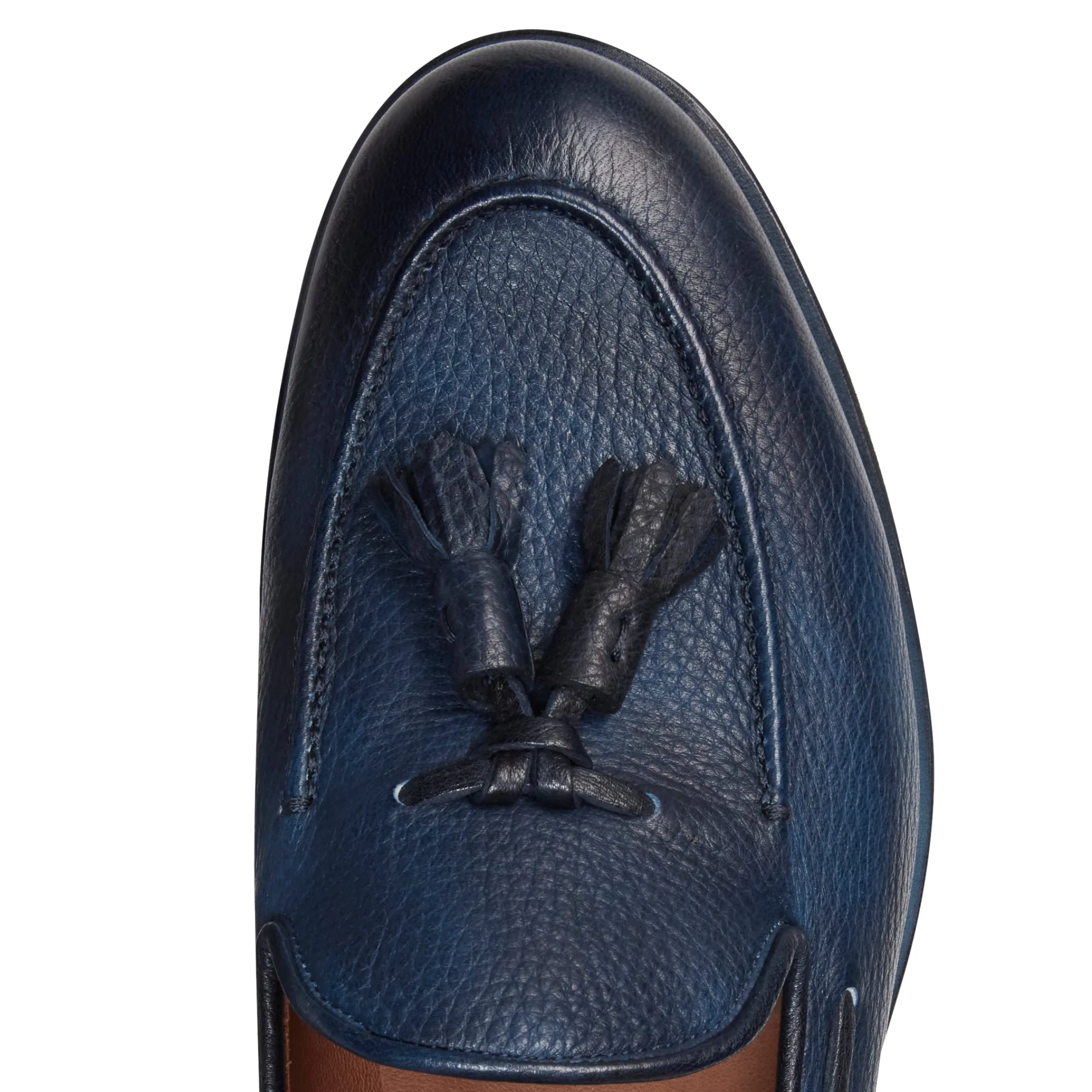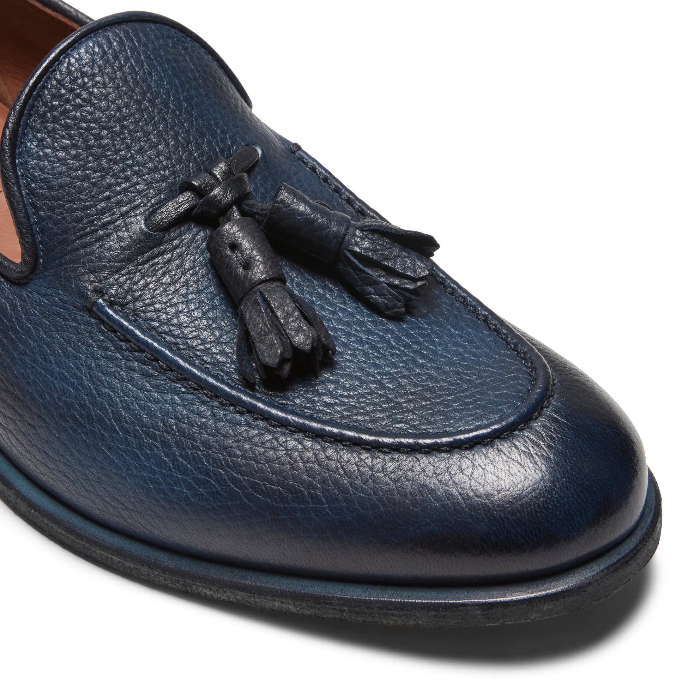 Iconic Brera loafer made of soft unlined deerskin. The leather is hand-buffed with the color with a light and dark effect. Hand-colored leather sole.