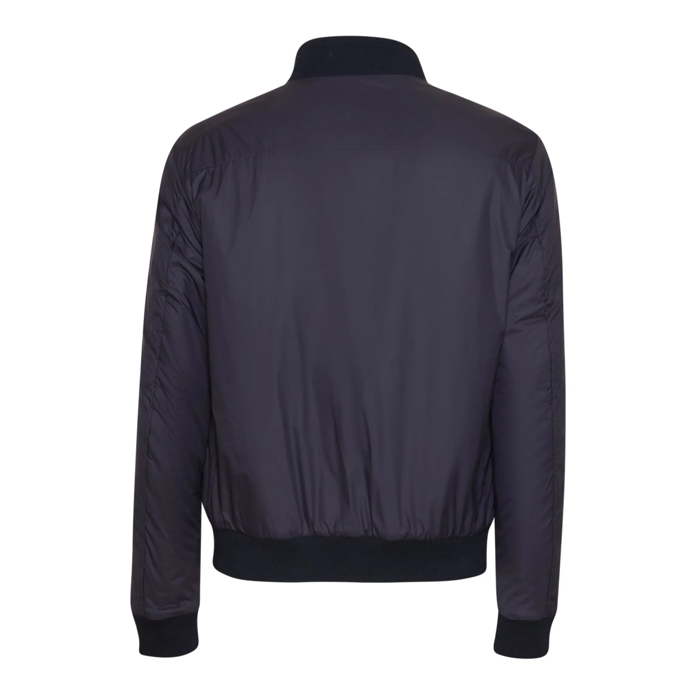 Bomber jacket made of soft nappa leather. Casual style with tone-on-tone knitted hem and cuffs. The garment is reversible; the contrasting-colour nylon interior makes it versatile in case of sudden changes in weather.
