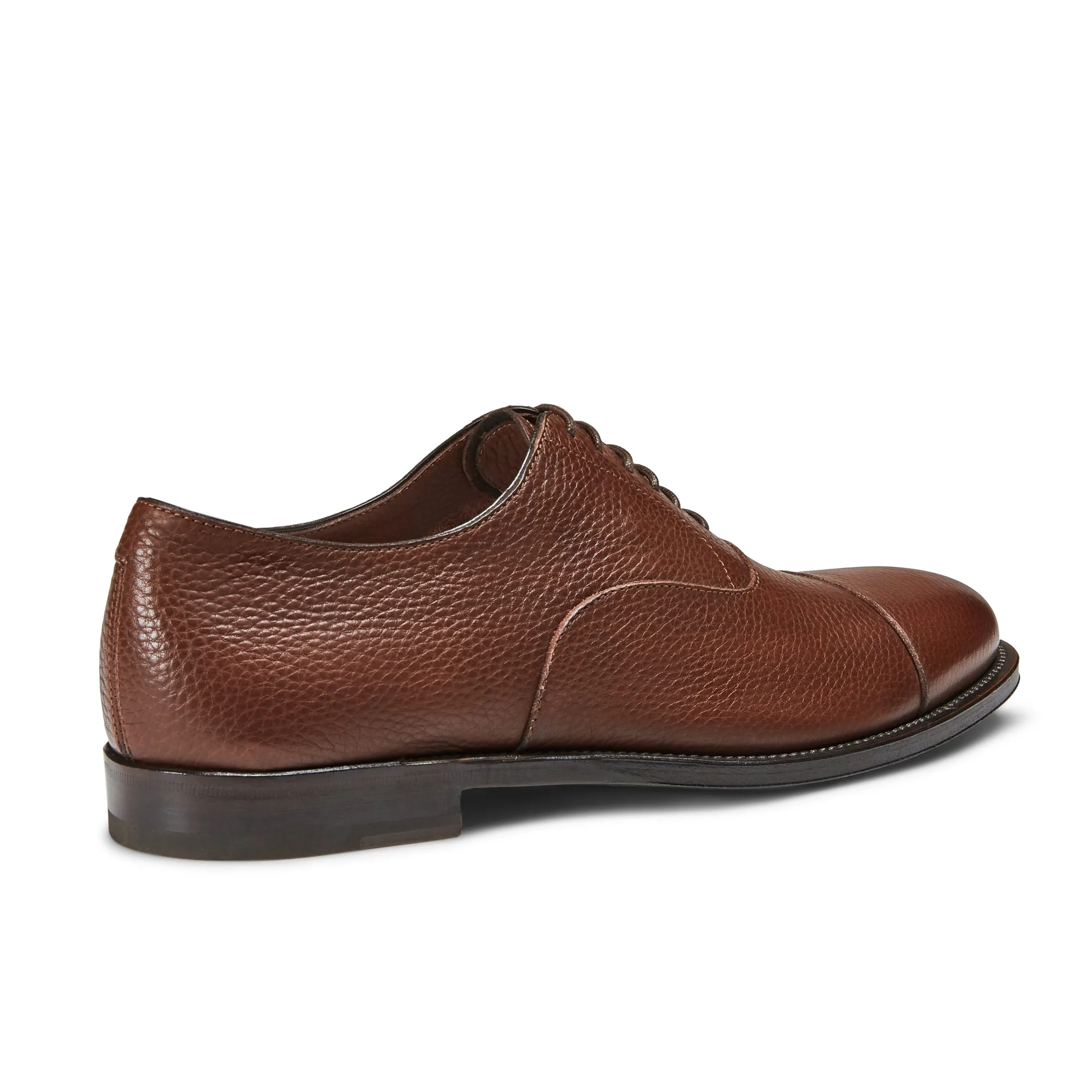 Cap toe Oxford shoe made of soft tumbled leather that accentuates the natural grain. S…